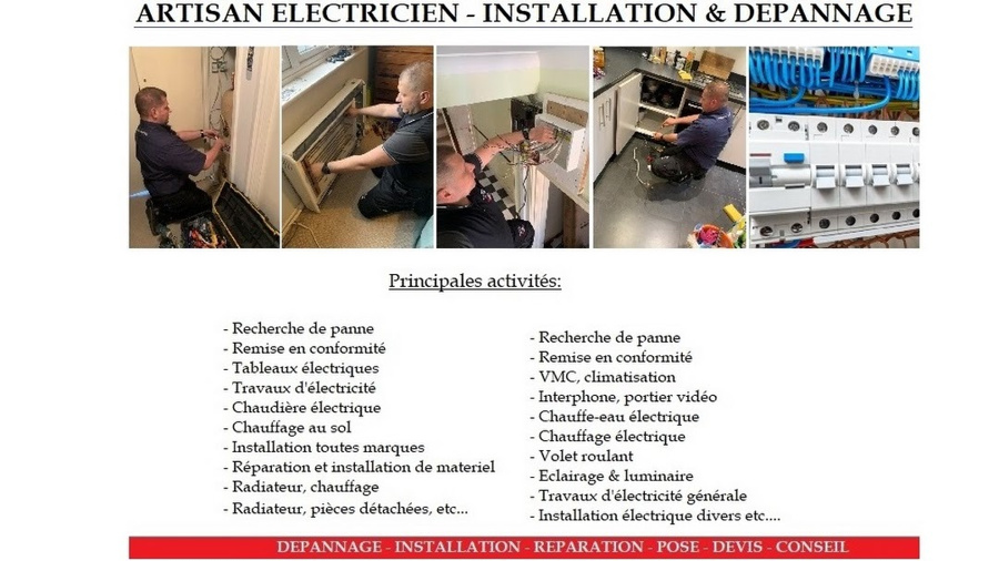 - Installation et remplacement de matériel électrique (Legrand, Hager, Schneider)